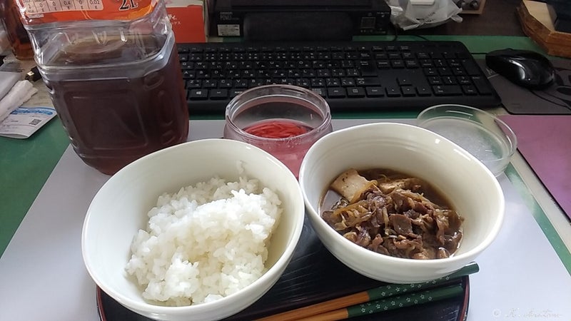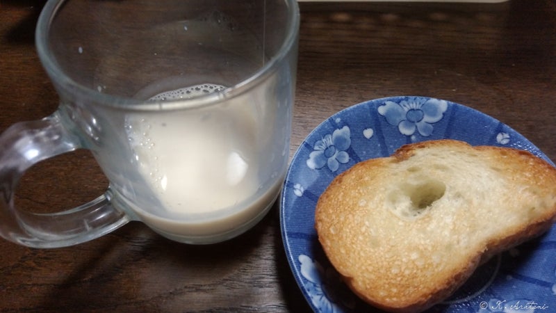 朝ごはんは残りご飯でかつ節のおにぎり。