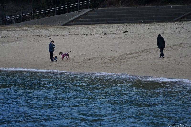 海上プロムナード帰路に見ると、砂浜で大喜びて転がりまわって遊んでいました(笑)