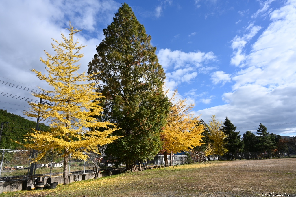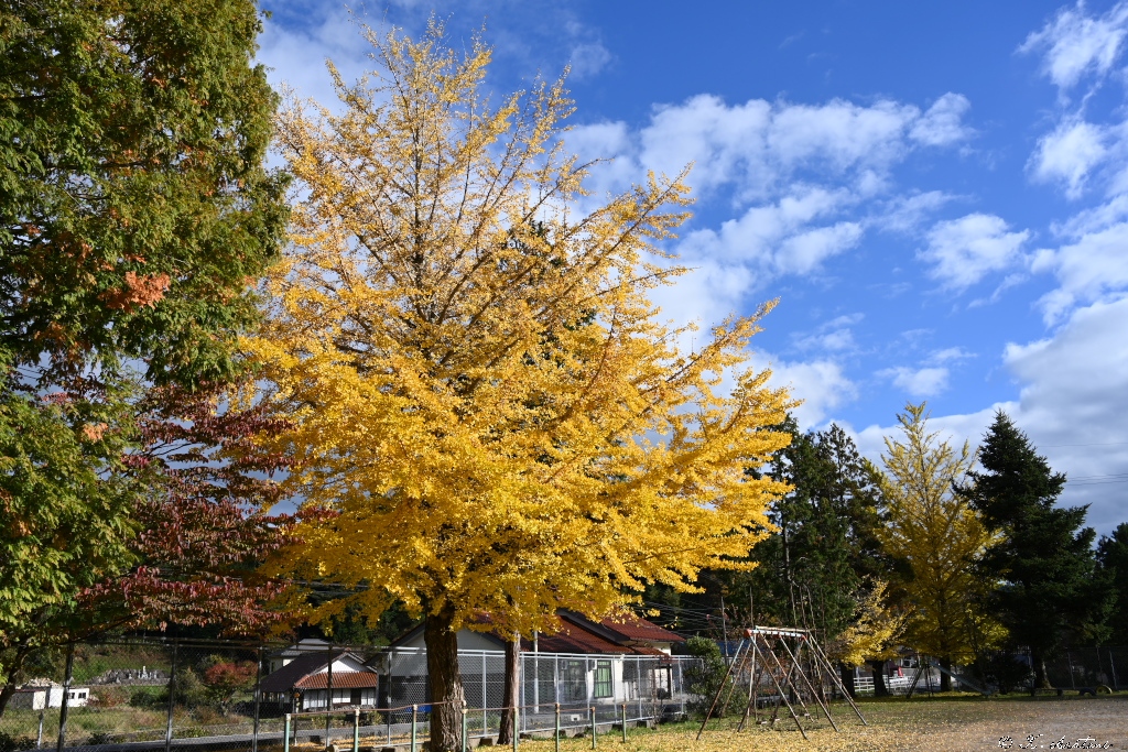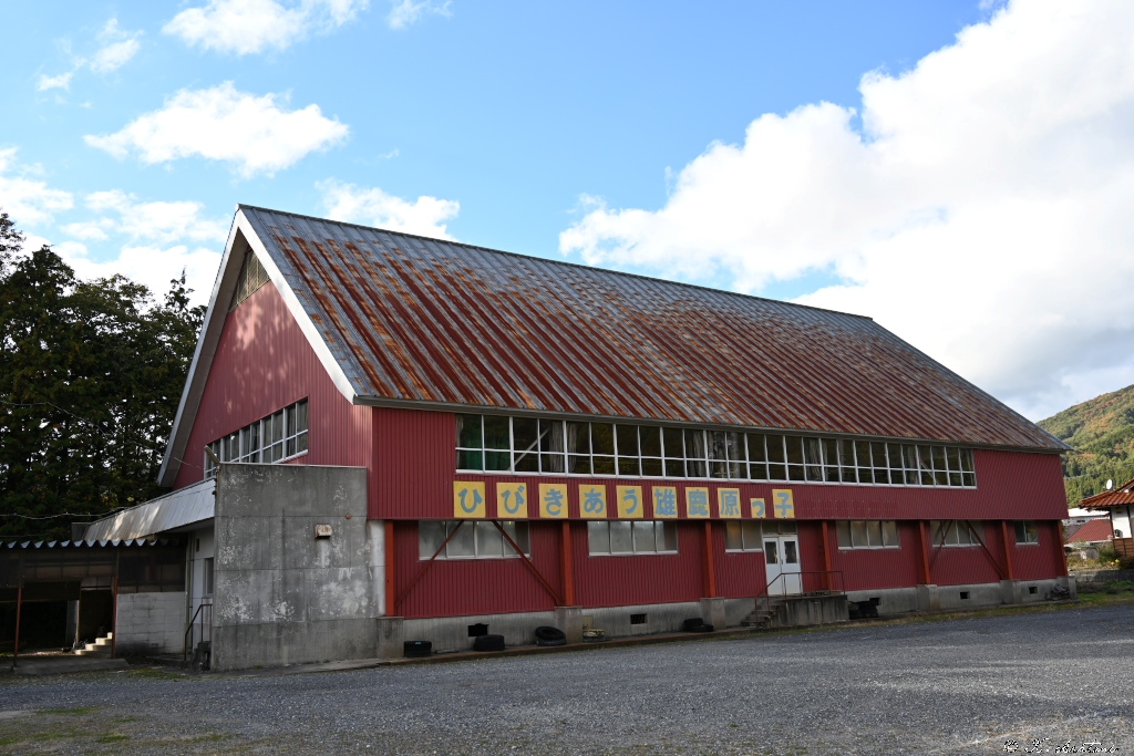 往路に見つけていた芸北の紅葉スポット。「雄学館」と看板があります。広島県立加計高校芸北分校の男子寄宿舎として「旧雄鹿原小学校」の建物をリノベーションしたものだそうです。