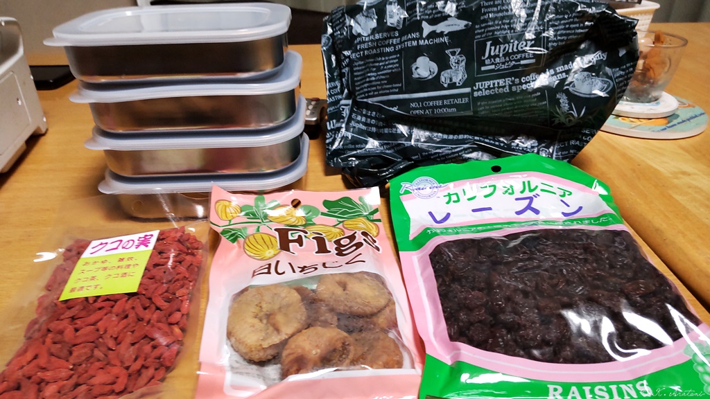 無花果・レーズンのドライフルーツはパン焼きに使う予定。