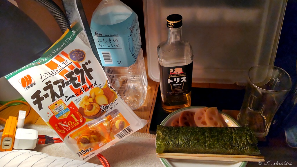 昨夜深夜に江波巻きとか,チーズアーモンドとか,柿の種とか。食べながら水割り呑んだので,朝ごはんは野菜ジュースのみ。先週,自宅断熱リフォームの見積もりをお願いしました。今月末契約しますが,代金の半額を振り込まねばなりません。