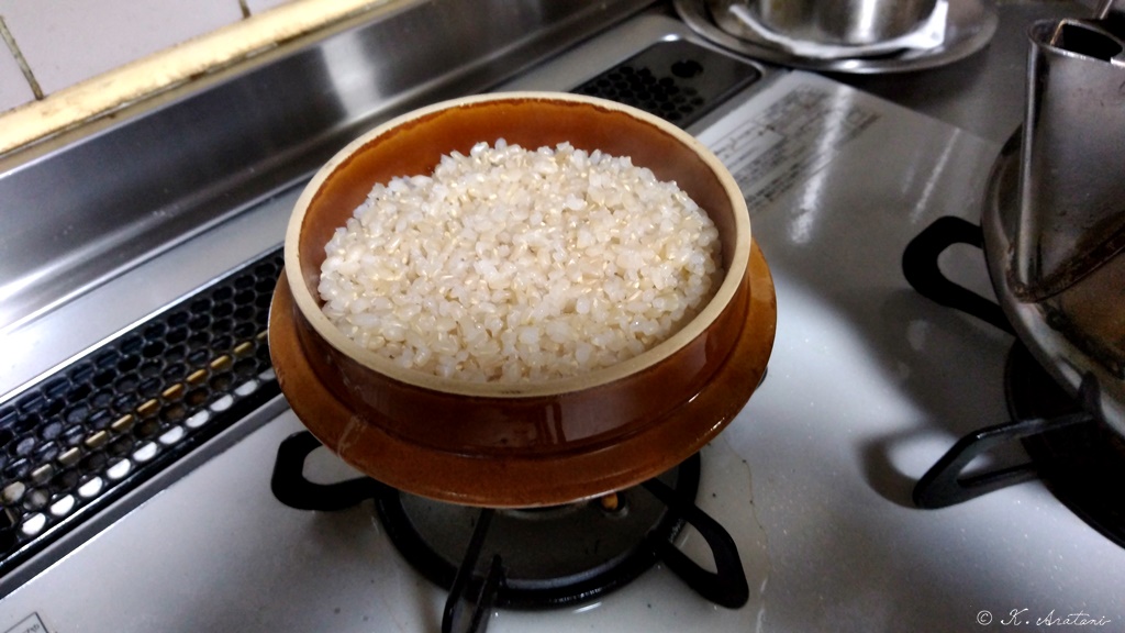 晩御飯はチラシ寿司。それと頂き物の玄米をコンロの炊飯メニュー使用。ひっぱりタコ飯の入っていた土鍋で炊いてみました。コンロの説明書に書いてあった通り吹きこぼれちゃいました。でも火力調整しながら,何とか炊き上げ。ちょっと固いけれど,とても良い香りに炊きあがりました。