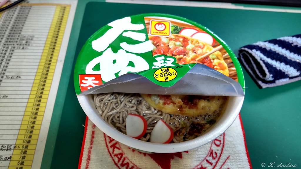 今朝8時頃に佐賀在住の長男が帰省しました。私は寝ていて気付かず。朝ごはんは緑のたぬき。しまった。今日は晩ごはんも蕎麦だった。午前中はブログ記入です。昼ごはんは,近所のスーパーのお好み焼き。そば・肉・卵・イカ天。午後もブログ書いてました。