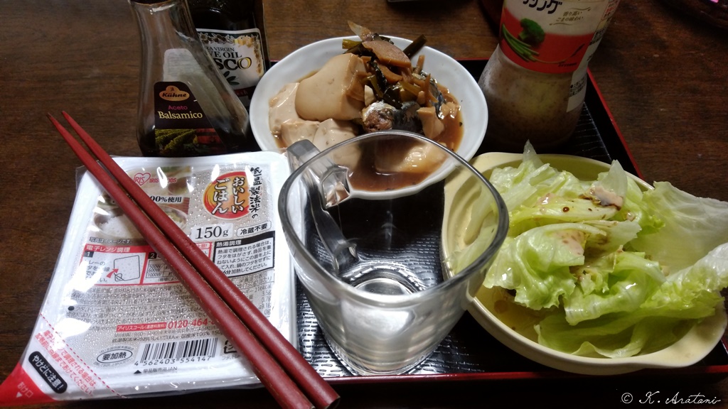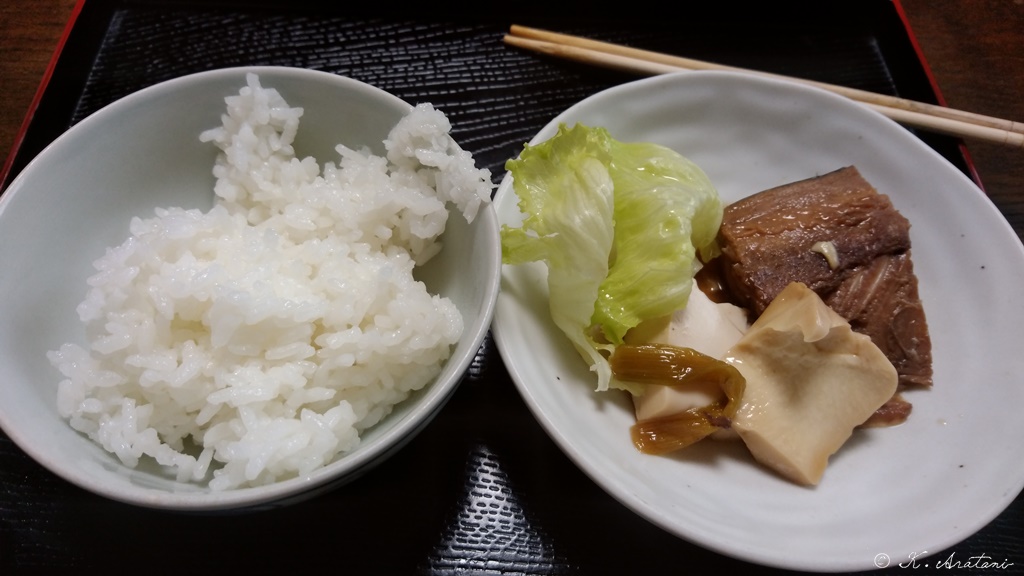 晩ごはんは,パックご飯に鯖の煮つけ。