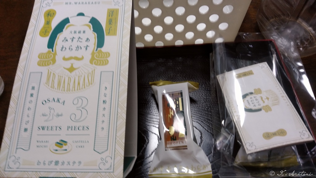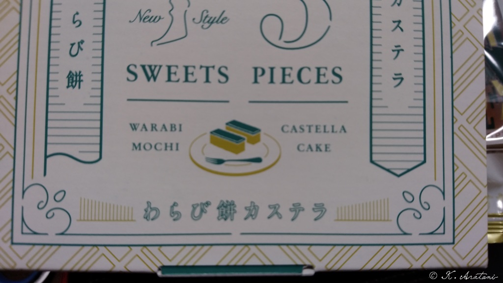 ちっちやなカステラの上をワラビ餅でコーティングしたカステラなのに和菓子という面白いお菓子でした。