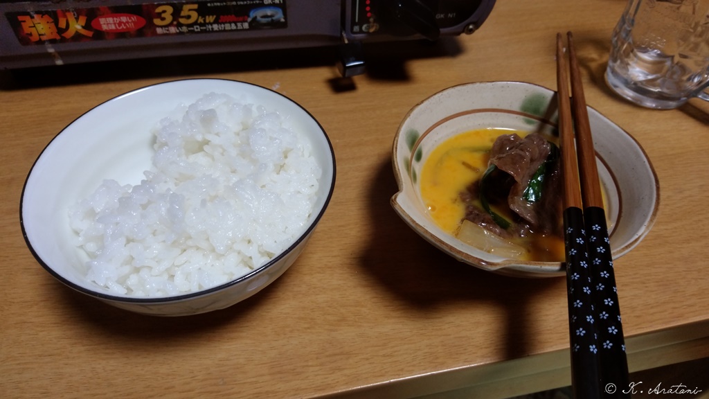 いつもの事なので書いていませんでしたが,食中か食後に小さいカップ一杯くらいのブラックコーヒーを飲みます。あと,味噌汁等には糸寒天をひとつまみ。