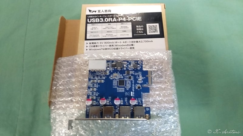 注文していたPCI Express 増設4ポートUSBが届いていました。
