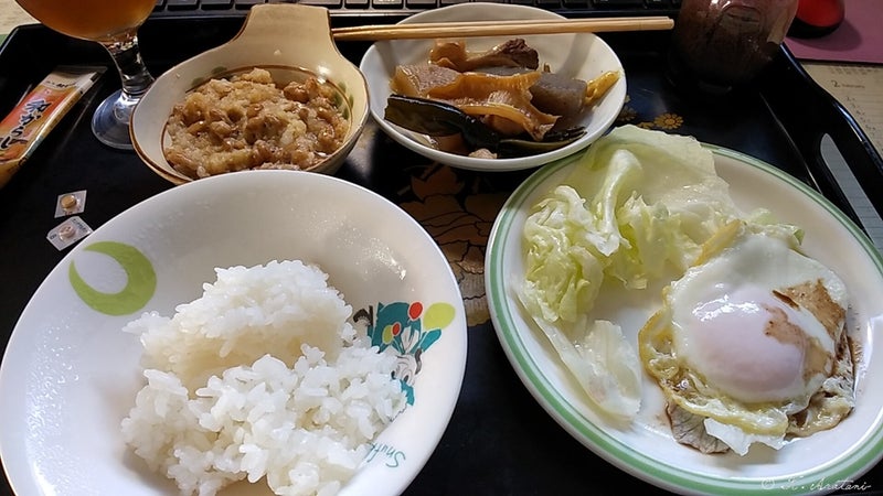 朝ごはんは、目玉焼き・レタス。