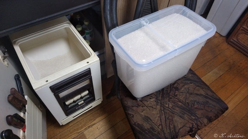 12Kgケース×2・6kgケース保管の米は全部なくなりました。