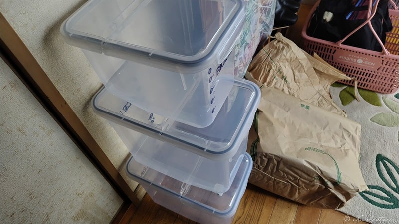 米櫃のコメがなくなったので、保存ケース保管の新米12kgを追加。