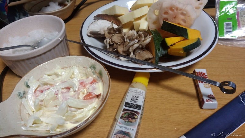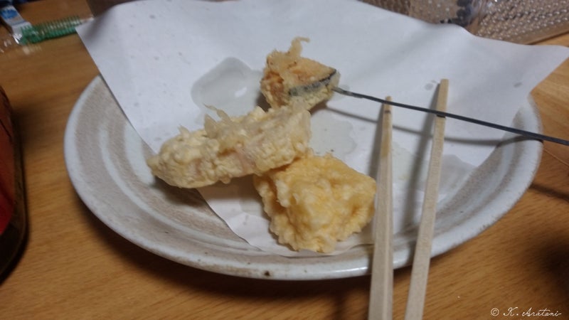 手巻きずしネタの残りのオニオンサーモンはかき揚げ。