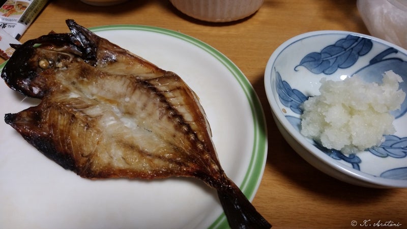 上関で買っていた冷凍の味の開きと大根おろし