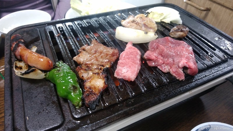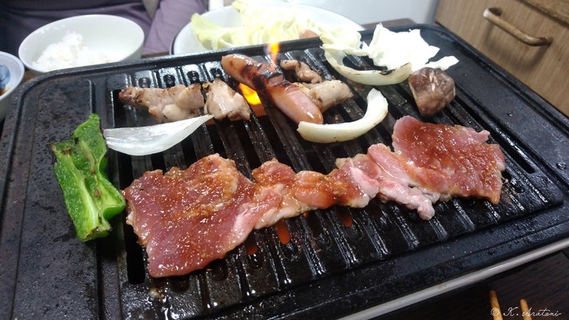車庫での炭火焼肉から、おうち内ガスコンロ焼肉に変更です。