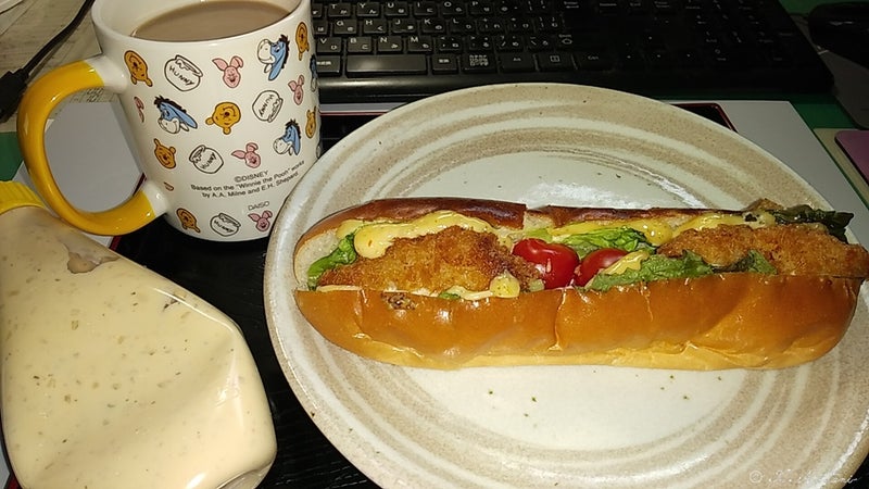 朝ごはんは、今朝も白身フライとタルタルのドッグ♪