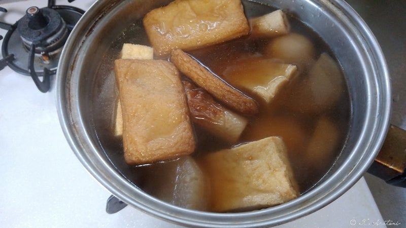 妻が大根の煮物にいろいろ追加して完全おでんにしていたので、追加でおでん食べます。